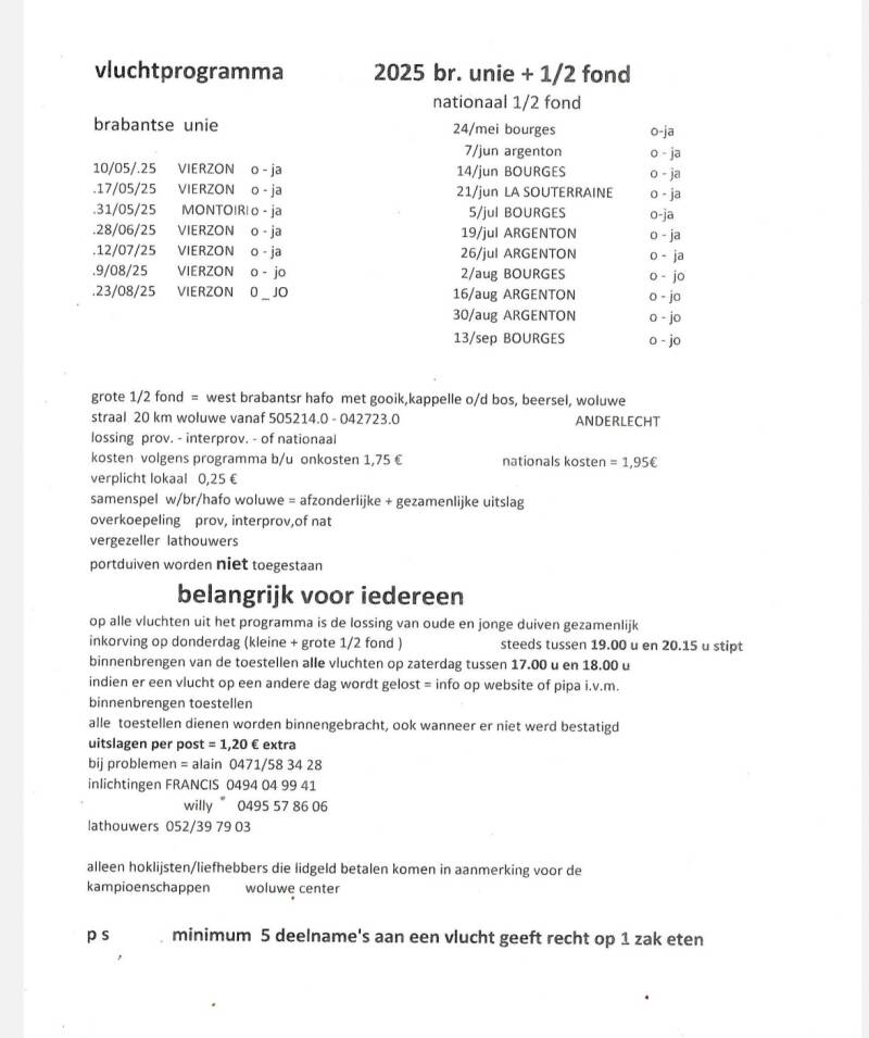 Voor de grote Halve-Fond vluchten georganiseerd door de Brabantse Unie dient